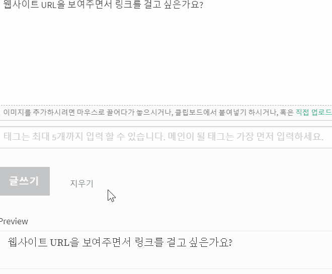 웹사이트 주소를 입력하면, 링크가 바로 걸립니다. 하지만 웹사이트의 URL http:// 또는 https:// 까지 입력을 해주셔야하는 점 잊지마세요!!