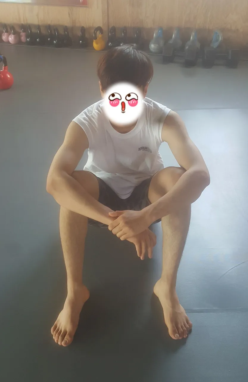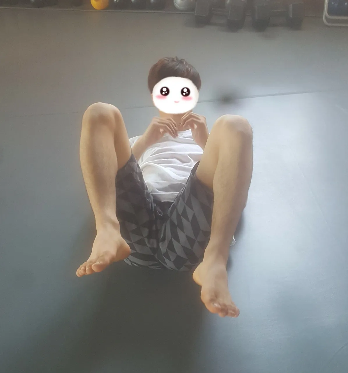 I) 힢이스케잎 과 동일하게 편하게 다리를 세워 앉아줍니다.