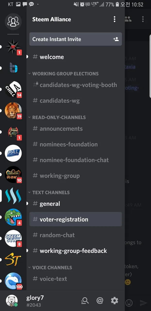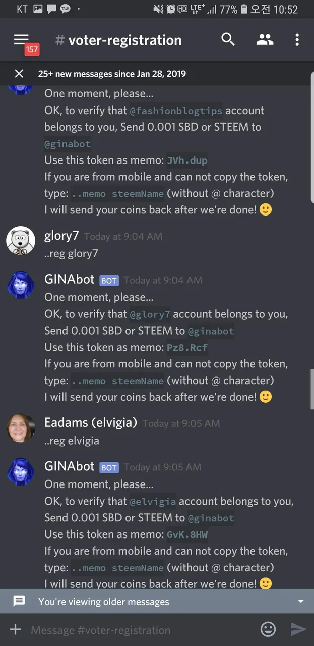 - 투표자 등록: 채널에 들어가서 ..reg 스팀잇아이디 를 칩니다 (저는 ..reg glory7)