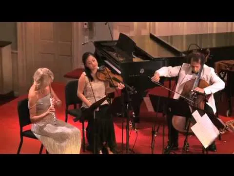 그럼 감상해 보실까요? 동영상에선 플룻을 뉴질랜트 태생의 미국 플루티스트 마리아 마틴이, 바이올린을 재미 바이올리니스트 김혜진이, 1번 첼로를 미국의 마에스트로 콜린 카가, 2번 첼로를 이날 공연의 네 번째 곡에도 참여한 에드워드 아론이 맡고 있습니다.
