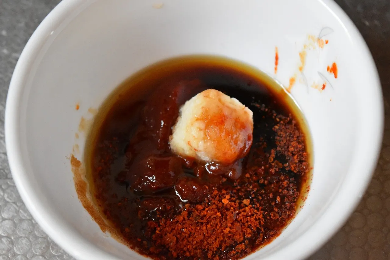 소스: 식초2스푼 , 설탕2스푼 , 간장1스푼 , 고춧가루1스푼 , 고추장1스푼 , 마늘1스푼 , 참기름1스푼