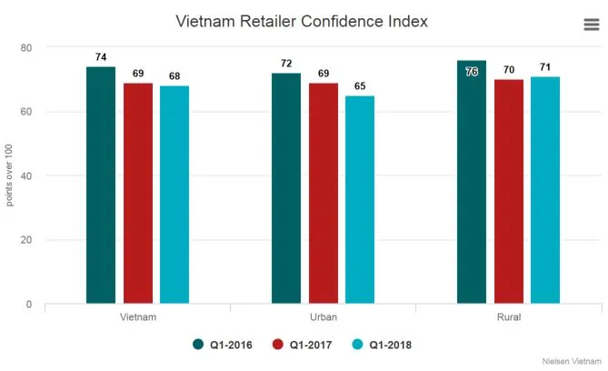 Nielsen 의 소비자 신뢰 지수를 보면 2018년 Q1 에 큰 폭의 상승이 있다. 태국, 말레이시아를 제치고 동남아시아 탑의 자리를 노리는 모양새다. 이는 갈수록 커지는 외국인 직접 투자 규모에 따라 경기가 순항하고 있고, 가계 소득이 지속적으로 증가하는 데다가 정부의 강력한 드라이브로 산업 전반의 성장 분위기가 고조되는 데 힘입은 것으로 보인다.