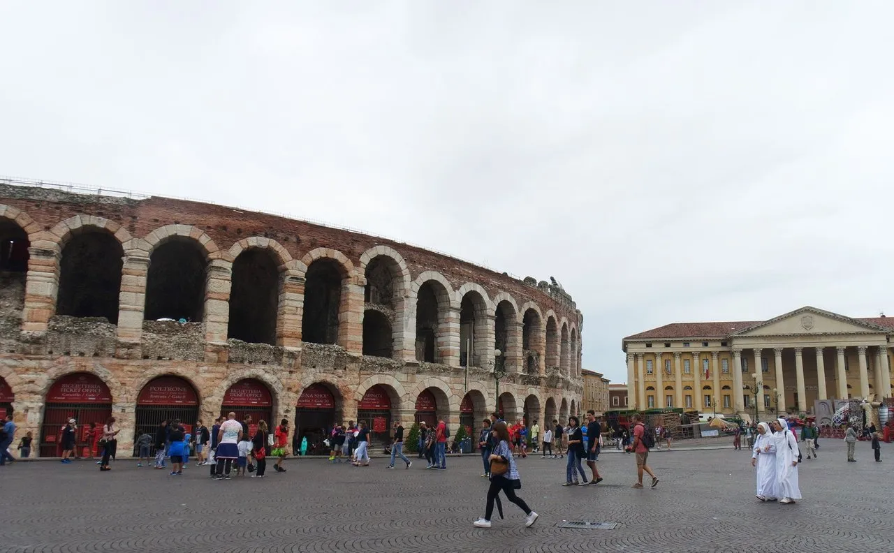 로마의 콜롯세움이 생기기 전까지는 베로나의 이 아레나가 가장 컸다고 하는데, 로마시대 때에는 검투사들의 잔인한 싸움터이자 죄인들의 처형 장소였던 곳이 19세기 중반에 발굴된 후 복원 과정을 거쳐 경기장-법원으로 사용되다가 현재는 야외 오페라 극장으로서 여름마다 세계적으로 유명한 베르디의 오페라 축제가 열리고 있어 무척이나 유명하다고 한다.