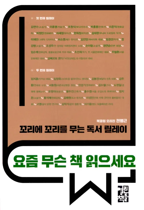 여기에 다양한 분야의 사람들의 책 이야기가 있습니다. 독서에 대한 이야기를 인터뷰하고 다음 사람에게 바통을 넘겨주는 형식으로 진행하여 글로 엮은 것이지요. 김연수 작가로 시작된 책에 대한 이야기가 영화감독 이준익, 배우 박정민, 뮤지션 한희정을 거쳐 방송인 알베르토 몬디까지 이어지곤 합니다. 자신이 읽은 책이 삶에 끼친 영향에 대한 그들의 진지한 설명을 들어보면, 이 사람들은 책을 읽어본 척 하는 것이 아니라 제대로 읽는 사람들이라는 생각을 하게 됩니다. 개인적으로는 TV 프로그램 <비정상 회담>에 출연하는 알베르토 몬디가 밀란 쿤데라의 책을 모두 읽었다고 하는 부분에서 깜짝 놀랐습니다.