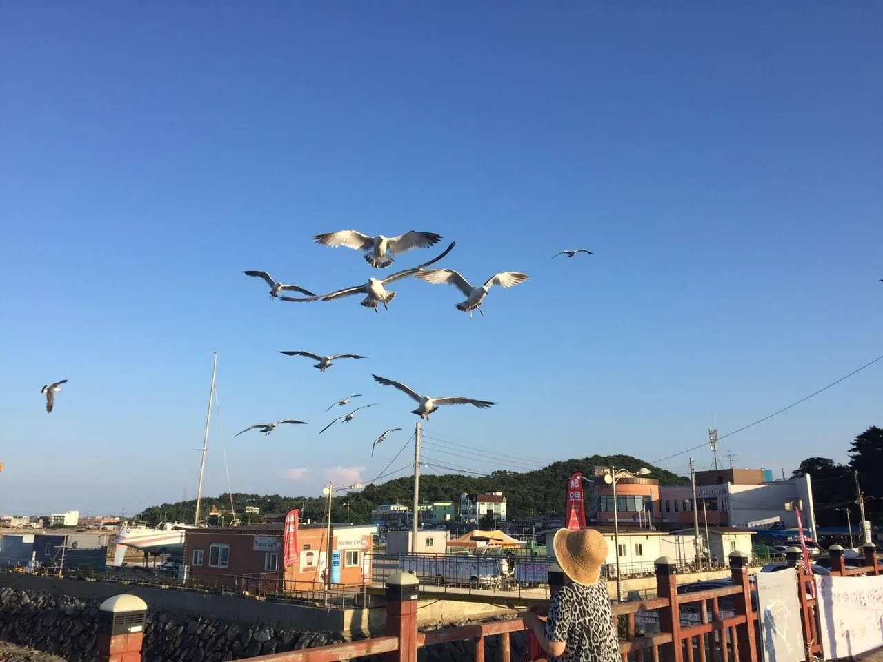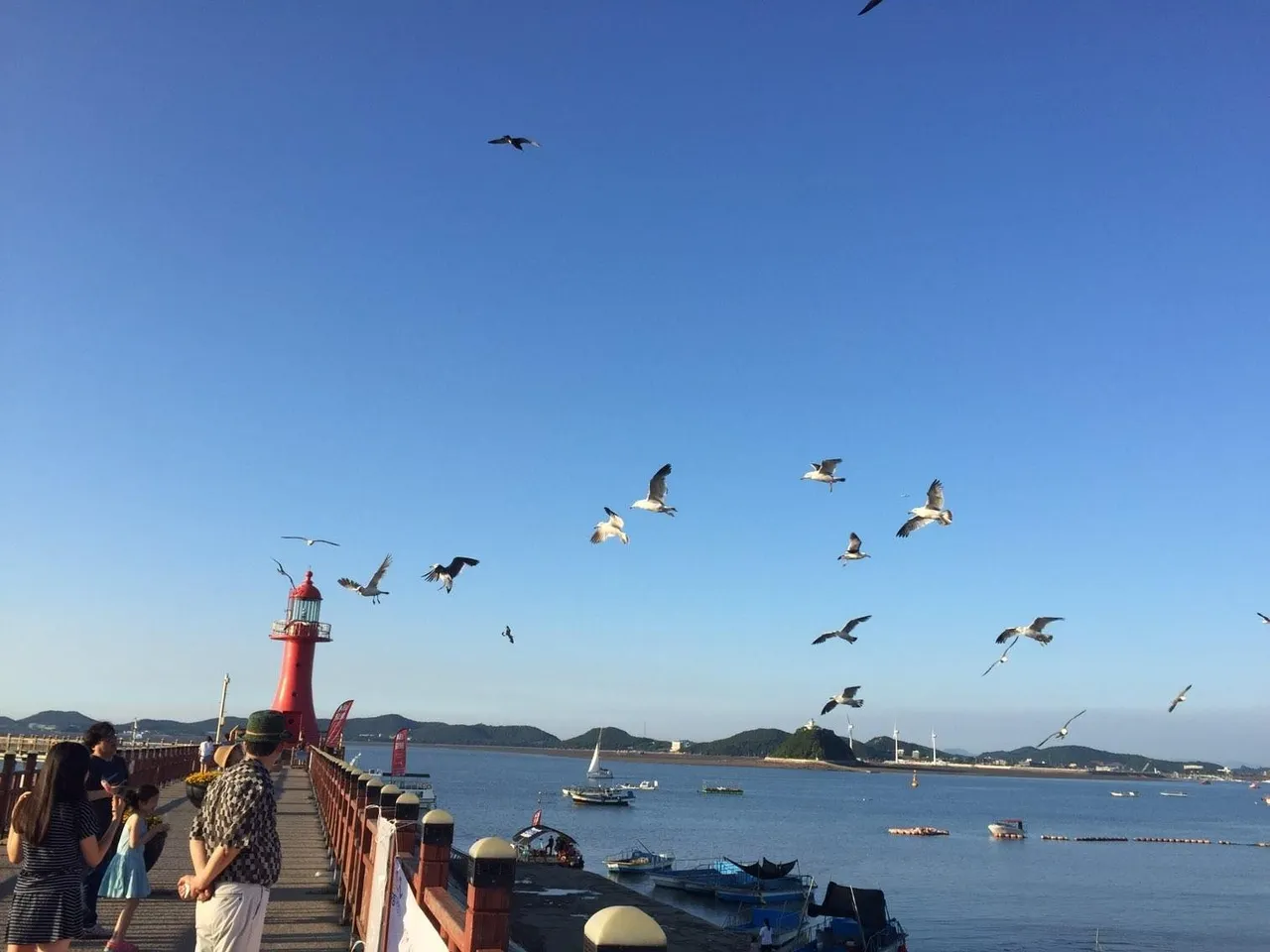 갈매기가 많이 있네요. 어느 분이 새우깡을 주고 계신데, 하늘로 새우깡을 던지는데 공중에서 잘 받아 먹네요.
