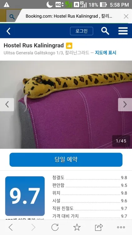 제가 예약한 호스텔이에요. 평점이 무려 9.7점인데, 깨끗하고, 위치가 시내 중심지인데, 저렴한 가격(도미토리 1박 7,800원)으로 제공해요. 그리고 아침도 주네요..ㅋㅋ