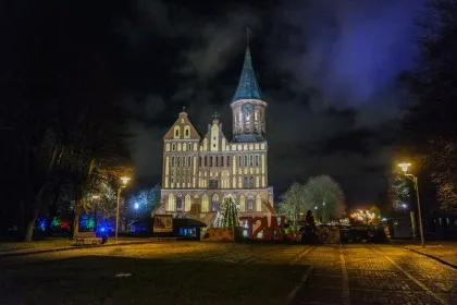 예약한 호스텔 가는 길에 성당이 쓸쓸해 보여서, 제가 한 번 멋지게 찍어줬네요. Königsberg Cathedral인데요. 거의 칼리닌그라드 메인 성당이에요. 성당 앞 쪽에서는 여러 부스들이 설치되어 있었는데, 간단하게 크리스마스 마켓처럼 하나보더라고요.