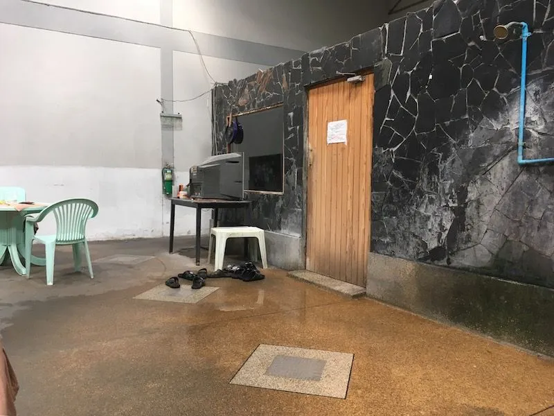 태국식 탕은 따뜻한 탕은 잘 없고 냉탕에 사우나가 발달 되어있는 것 같습니다. 그런데 원래 더운 나라라서 자극을 줄려고 하는지 사우나 내의 스팀온도가 장난이 아닙니다. 들어가는 순간 처음엔 아예 들어갈 수 조차 없었습니다. 체감온도 약 200도 (ㅋㅋㅋ) 입니다. 혹은 300도. 무서운 온도가 느껴집니다. 정말 장난 아닙니다. 사우나 바깥에 티비를 설치해서 유리창을 통해 티비를 봅니다. 선을 끌어들여서 사우나 안에서 스피커를 빵빵하게 들을 수 있습니다. 사우나 밖에 슬리퍼가 모여있죠? 내부에 나무가 잘 깔려 있단 말이죠. 내부가 흙바닥인 곳도 있습니다. 거긴 슬리퍼를 신고 들어가야죠^^
