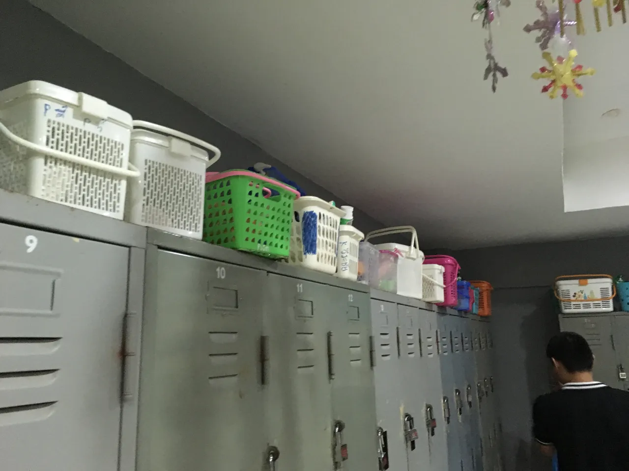 오토바이 열쇠처럼 생겼네요. 옷장은 철제 캐비닛에 커다란 쇠 자물통으로 만들어져 있습니다. 바구니들이 많은 걸 보니 역시 매월 정기고객들의 것인 것 같군요. 옷입는 공간에 슬리퍼와 반바지가 갖추어져 있습니다. 우리 찜질방처럼 반바지를 입어야 하는데요. 탕 내에 들어갈 때도 반바지는 꼭 착용합니다. 반바지까지 벗는 순간은 마지막 개별 파티션이 쳐져 있는 샤워실 뿐입니다. 그러니까 우리의 찜질방과 일반 목욕탕을 한 곳에 섞어놓은 듯한 분위기입니다. 사진 보시면 아시겠지만 목욕탕 안에 스맛폰을 들고 들어옵니다. 다들 싸우나 한 번 지지고 나오면 냉탕에서 식히고 테이블에 앉아서 스마트폰을 갖고 놉니다