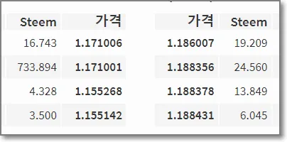 그래서 왼쪽의 매수 주문창(살래요) 그룹들중에