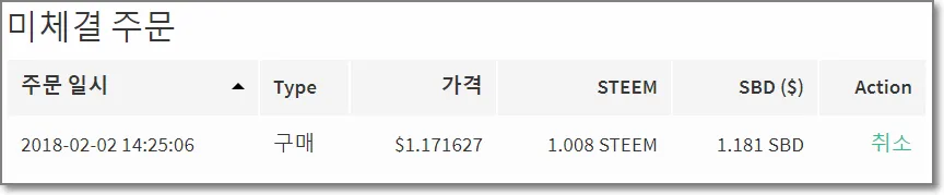 미체결은 지갑에 가보면 이렇게 표시가 됩니다.