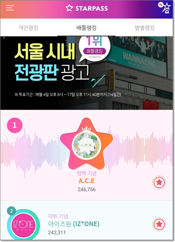 이쪽의 경우는 자신들의 아이돌에게 별을 주면