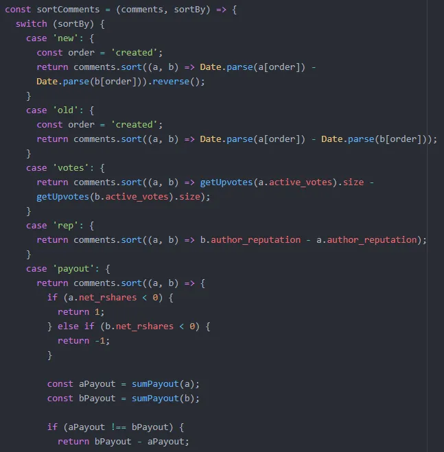 When the option is chosen, the specific switch case will match and sort the comments by the requested sort type.