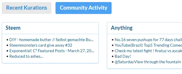 But I already use infinite scroll on the Steem pages. So it's better to stick to that. The sections needed to be in their own view to have infinite scroll work for each. As such, section are now viewable separately as tabs.