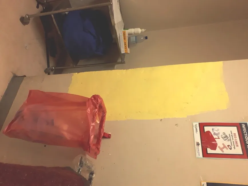 While I was waiting, the floor got mopped and the blanket on the bed changed. It seems the walls are not a priority.