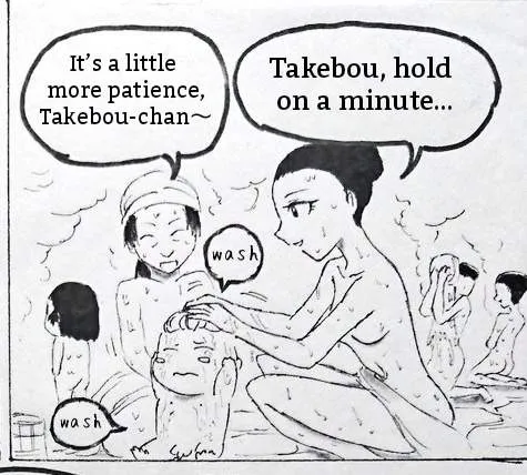 I'll wash your back! I clean up any dirt with my trained body in an instant...