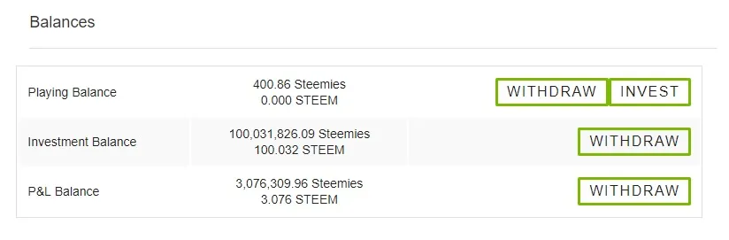 Each investment comes with a 0.5% dilution fee that goes to previous investors. While this may look like a ponzi, it is mostly there to give an incentive to keep the investment going which helps to ensure the limits. This 0.5% dilution fee is very easy to overcome. I invested 50 Steem myself early on and added 50 more once the dilution fee was fully covered. So far investing in this app has made a very good return for me without the investment itself being at risk. Right now I'm at a 3.108 STEEM Profit (this goes up and down based on how much the players win or lose)
