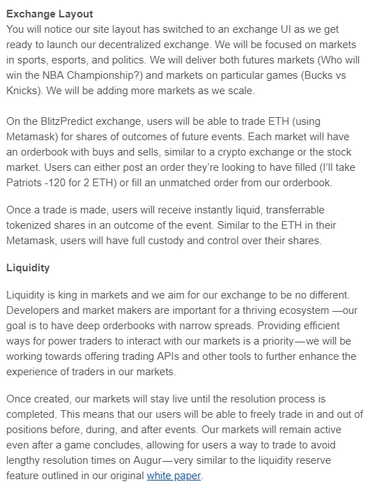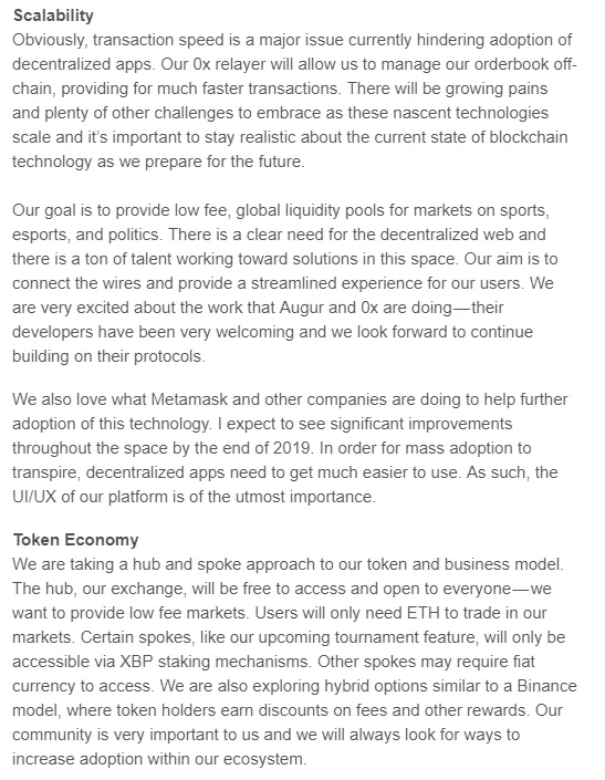 This is one of the projects I liked since the start since they potentially offer a solution to a problem. They allow to verify betting records on the Ethereum blockchain and plan to offer a sportsbook aggregator where you can directly take the best price from bookmakers or crypto projects that offer betting. I started using their prediction platform but only submitted 2 bets so far. Something I instantly noticed was that Matchbook was one of the books they offer and the best price came from there which had very low liquidity. It also standard seems to use 1 unit stakes to risk on 2.0+ odds and 1 unit to win on lower odds. They also near the launch of the BlitzPredict Exchange, built on top of Ethereum, Augur, and 0x.