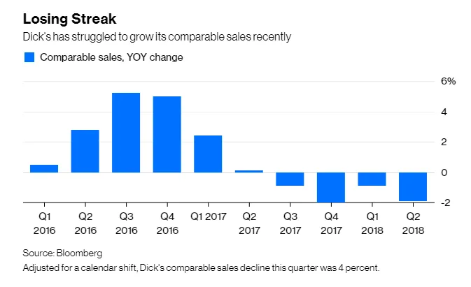 Dick’s Sporting Goods reported second-quarter earnings on Wednesday and lets just say, they had triple bogey on a par 4 hole. Dick's second quarter same-store sales fell again and the company revised down their same-store sales guidance for the year.