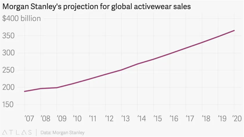 In 2016, the athleisure market was valued at $83 billion, but Morgan Stanley thinks the sector can grow to $350 billion, with 30% growth coming from Asia.