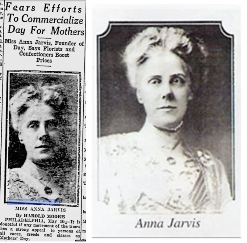 Perhaps it's appropriate that the day on which Americans celebrate mothers has an odd set of parents: President Woodrow Wilson is usually seen as the "father" of Mother's Day — for signing a proclamation on May 9, 1914, declaring the second Sunday of May "a public expression of our love and reverence for the mothers of our country" — while copywriter Anna Jarvis is usually seen as the "mother" of Mother's Day, for creating the movement that led to the proclamation. It was on May 10, 1908, that Jarvis sent 500 white carnations to Andrews Methodist Episcopal Church in her hometown of Grafton, W.Va., in honor of her late mother Ann. That date, on which she also held a celebration in Philadelphia, where she lived at the time, is considered to be America's first Mother's Day celebration. But Jarvis wasn't the only person to try to start a holiday dedicated to mothers. One notable person who might also have a claim to that fame: Jarvis' own mother, had come up with such an idea in the mid-19th century. Her vision for Mother's Day, however, looked very different from the gift-centric holiday of modern times. - Source at time / The History and Origins of Mothers Day