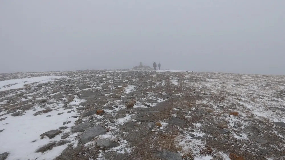 The next morning, the weather reports were forecasting winds of 55mph, gusting up to 65 on the summits. I didn't think this was safe on a mountain with exposed ridges. The others disagreed with me, saying that the ridge was protected for most of the way. But there was still one exposed section – not to mention the summit cone, which seemed pretty exposed!