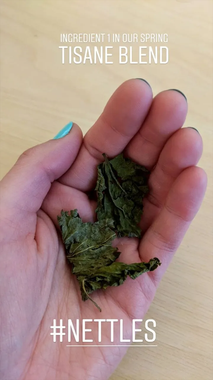 The first thing that went into our blend was nettles. Among other things, nettles are a natural diuretic, helping you to flush toxins from your system.