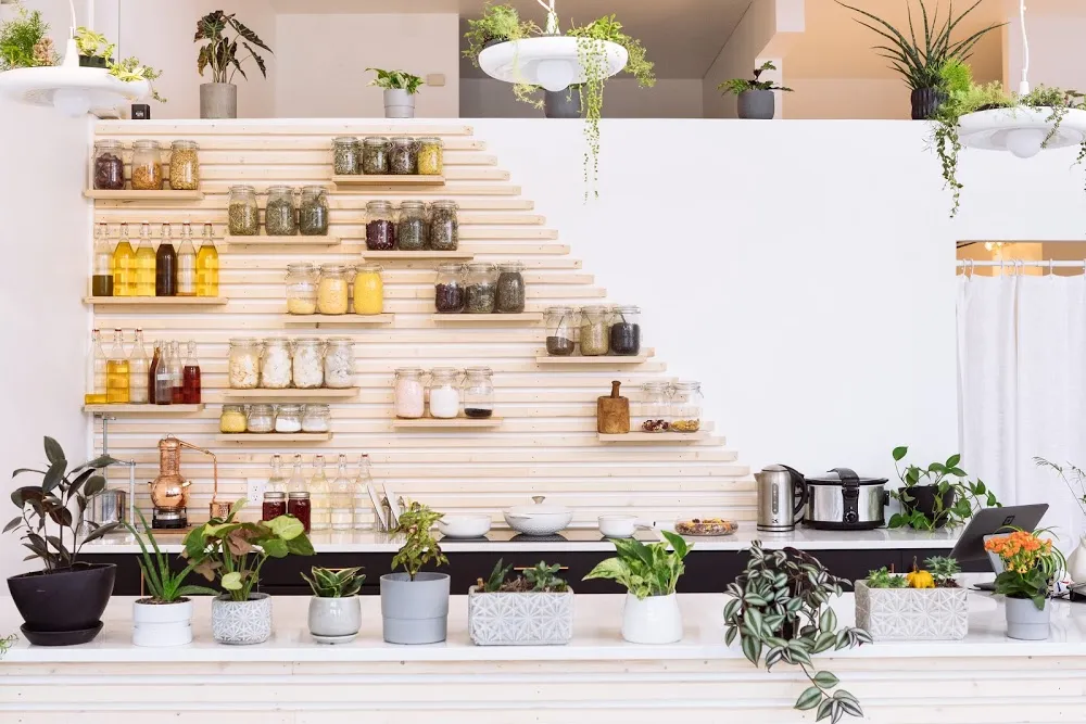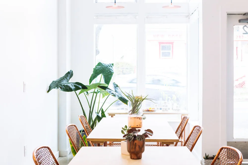 The shop itself is a beautiful, open and inviting space. There are tons of plants around and the minimalistic design approach makes for a clean and refreshing vibe. I'll include some photos of what it looks like below,