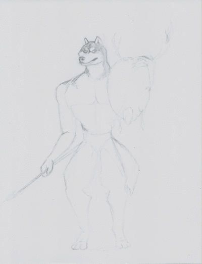 The theme for day #5 is "husky", this I have taken literally both for the body and for a beautiful dog that bears that name, resulting in a humanoid dog who just went out to hunt and prepares to eat his loot.