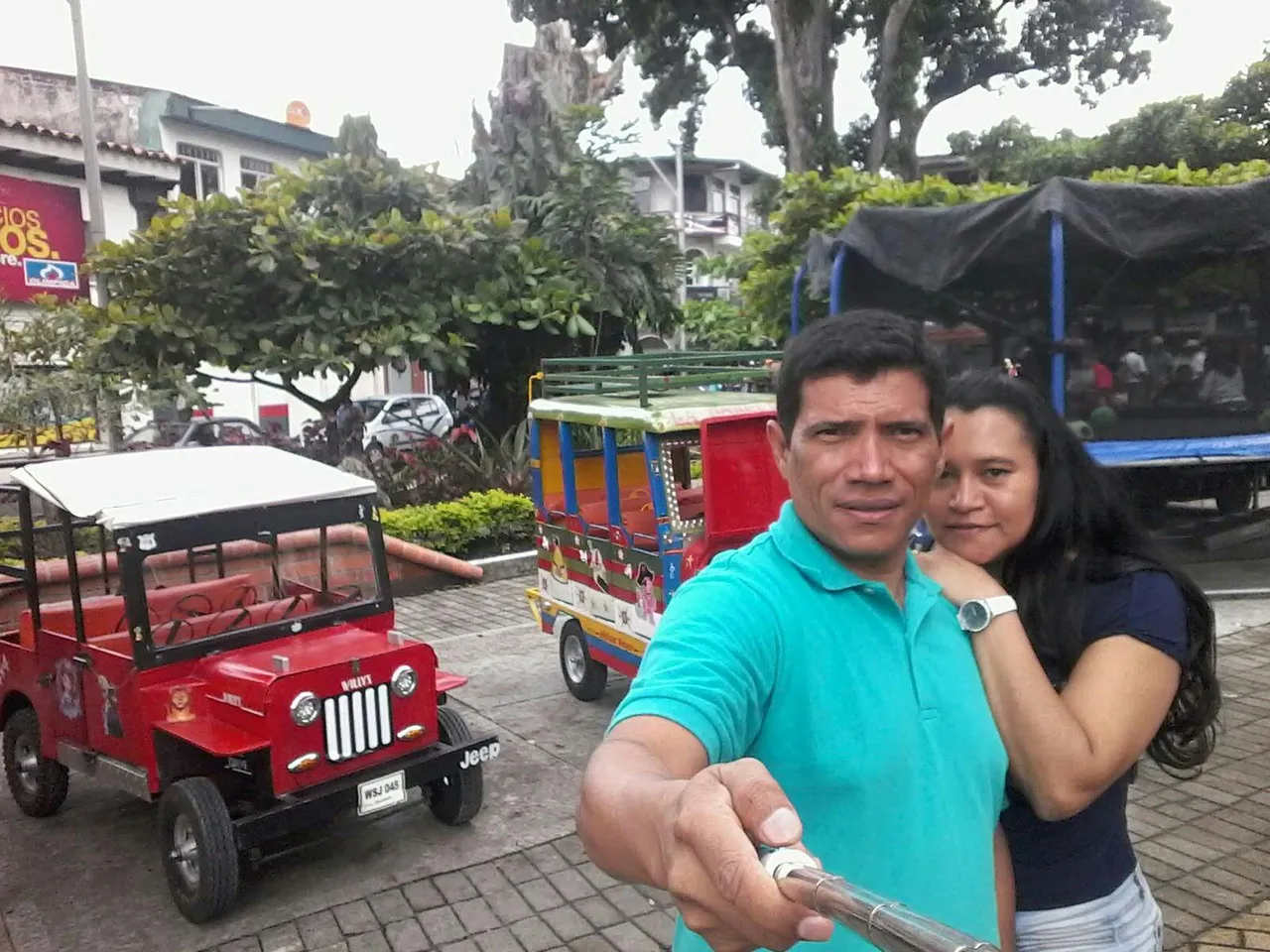 Por último, les comparto la foto con mi esposa, y que nos tomamos junto a unos pequeños modelos de carros Willis, que se usan para pasear a los niños por el parque y sacarles una foto de recuerdo. El jeep Willis es un carro muy representativo de la cultura campesina, ya que sus características lo hacen un transporte muy versátil para los escarpados caminos de nuestra geografía.