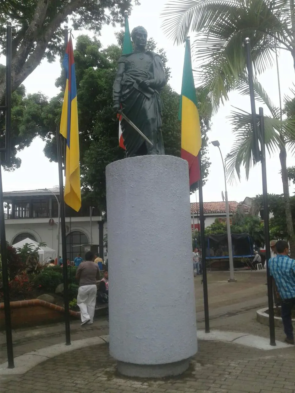 En varios municipios que hemos visitado, hemos encontrado la misma modalidad; que busca transmitir amor por su municipio y me imagino que de alguna manera también a los visitantes. Como en casi todos los parques de nuestro territorio, encontramos la estatua del libertador "Simón Bolívar", pero además; la de un personaje indígena representativo de la región y quienes habitaron este territorio. La gran mayoría de municipios y pueblos del departamento del Quindío toman sus nombres de personajes indigenas.