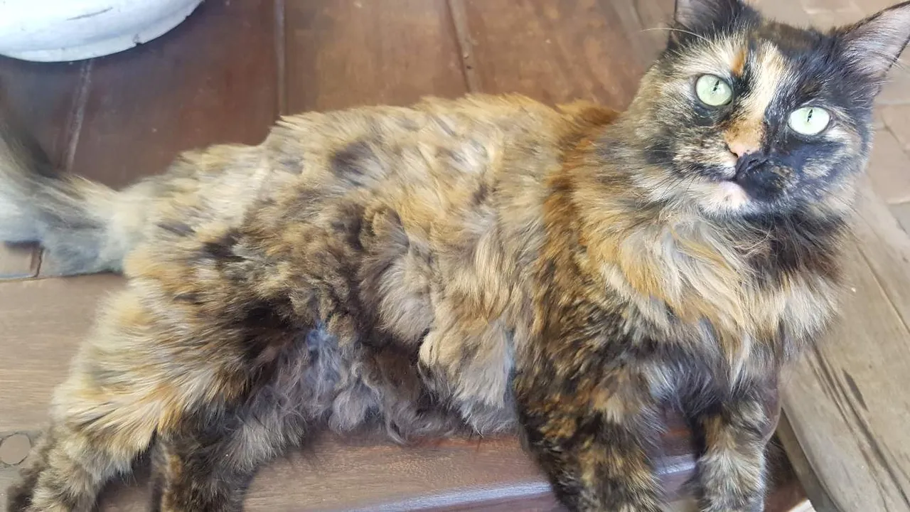 So my cat, Kiwi, has really long hair that tends to clump and knot and make dreads. She doesn't seem to be very good at keeping things under control so i normally cut her hair shorter with scissors.