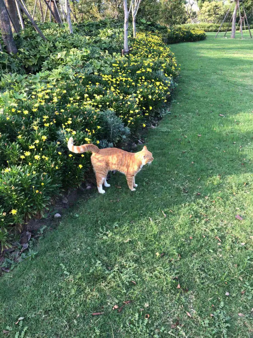 Today when I walked around ,I found a cat among flowers ,The cat is screaming to me ,and then following me .Maybe it was very hungering ,but there was no food with me . then I walked to the riverside , for somebody was fishing nearby the CHANG JINAG river , If somebody had got a fish, then i can buy it to feed the cat .But unfortunately,though there were a lot of Fishing rodS ,NO FISH had been caught. Still the cat calling me,then i wathed it carefully ,maybe it got ill ,maybe there are parasites on the cat