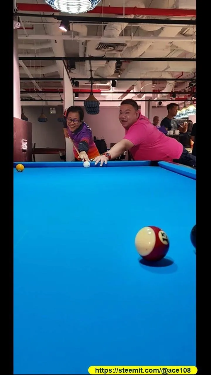 It was drizzling this morning. So, no early morning walk but had a bit of walk even though it was raining at lunch time. Took at train out to Vivo City for lunch. After work, went to a event for us sports volunteers at Kallang Wave mall and played some pool.