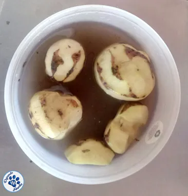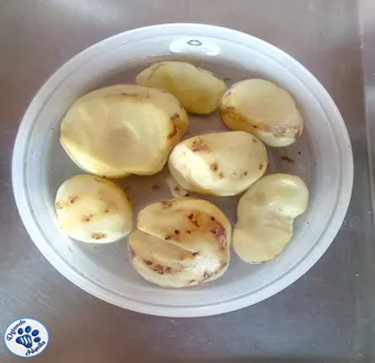 No se deberían pelar algunos tubérculos y vegetales, pues en la piel encontramos variedad de nutrientes, pero en este caso, como las he escogido mal, debo verificar que no le quede ningún gusano dentro. También deben de permanecer en humedad para que no se manche la piel, de inmediato las he pasado a agua limpia, para que no se impregne el sabor a tierra.