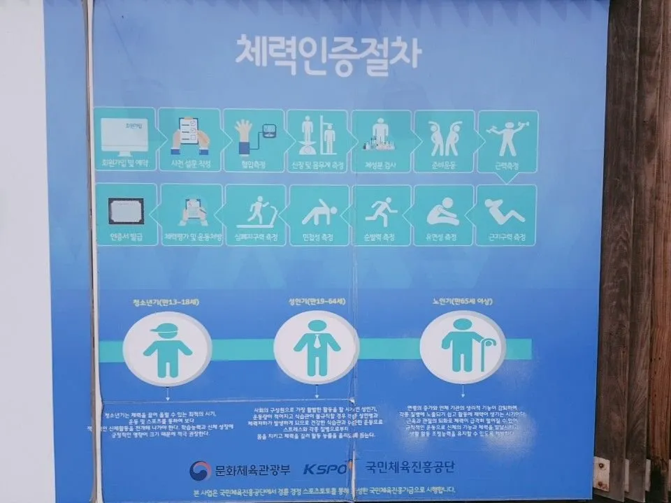 연령대별로 청소년, 성인, 노인 이렇게 3가지 그룹으로 체력 측정하게 되는데요, 다른분들은 연령대가 높으셔서 저 혼자 측정하게 되었습니다. 공무원, 공공기관 취업, 대학교입시에 필수로 등급서를 제출하는 곳이 많아져서 어른신들도 많이 계셨어요. 등급이 낮으면 취업이 힘들다고 하네요;;;;;;;;;