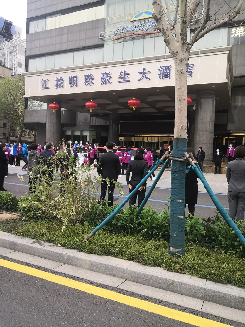 路遇欢送天津援汉医疗团,下班路过江边的那个球--明珠豪生大酒店。发现门前,人头攒动,马路边停着一排大客车。在现在这种时候,到处都人迹稀少,出现这种人群聚集的场面,肯定是有不寻常的事情。凑近一看,原来是入住明珠豪生大酒店的外省医疗团队要撤离了,正在举行欢送仪式。很多人围着一面蓝色的气质合影。虽然没有上前去表示感谢,但内心里还是很感激全国人民的支援的。也许他们中有些人还不能松口气,就要去支援海外的疫区。总之,希望这些曾经帮助过武汉的人和他们的家人平安健康。他们的撤离说明疫情最困难的时期已经过了,但大家还是不能掉以轻心,时刻防范疫情的第二波来袭啊!
