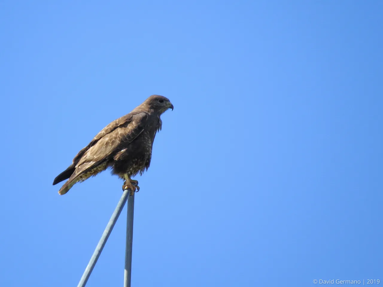 This time it was a beautiful Buteo buteo, commonly known as common buzzard, peacefully resting on a road pole!