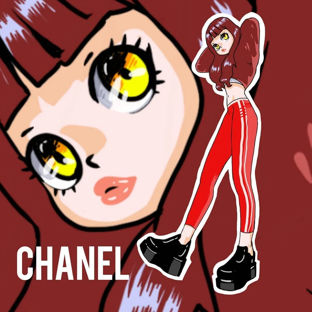 El primero es de una chica llamada Chanel, según Google ese es un nombre sexy jejeje y pues esta ilustración salió de una colaboración con una chica en Instagram y además Gris hizo algunas encuestas para que sus seguidores eligieran los atributos o características.
