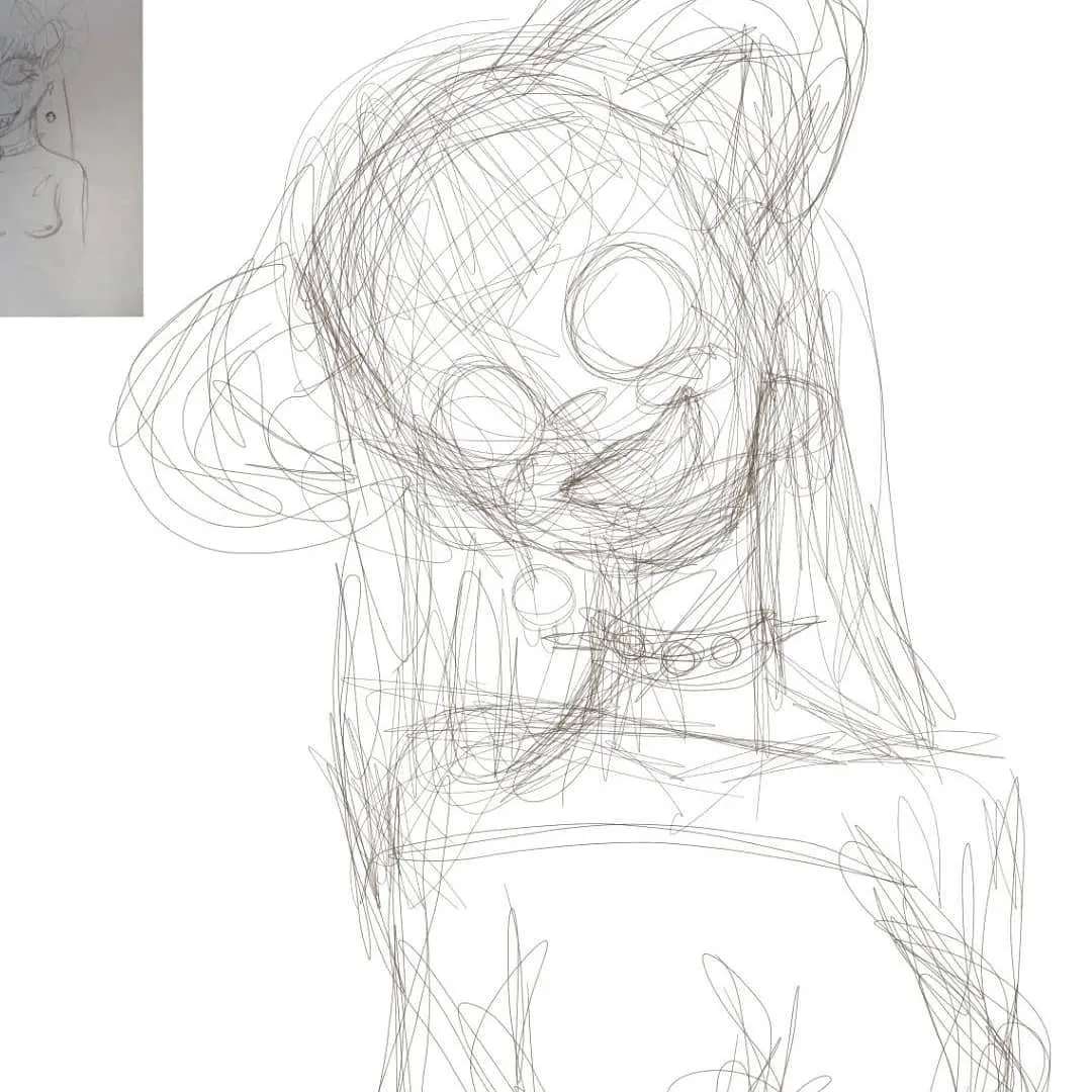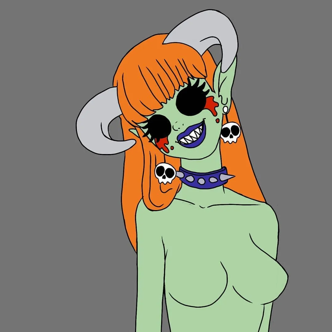 La siguiente ilustración es un dibujo que Gris hizo de un boceto de su hermanita. Es una mounstrua (¿así se dice?) sexy que le sangran los ojos (estos jóvenes de ahora...).