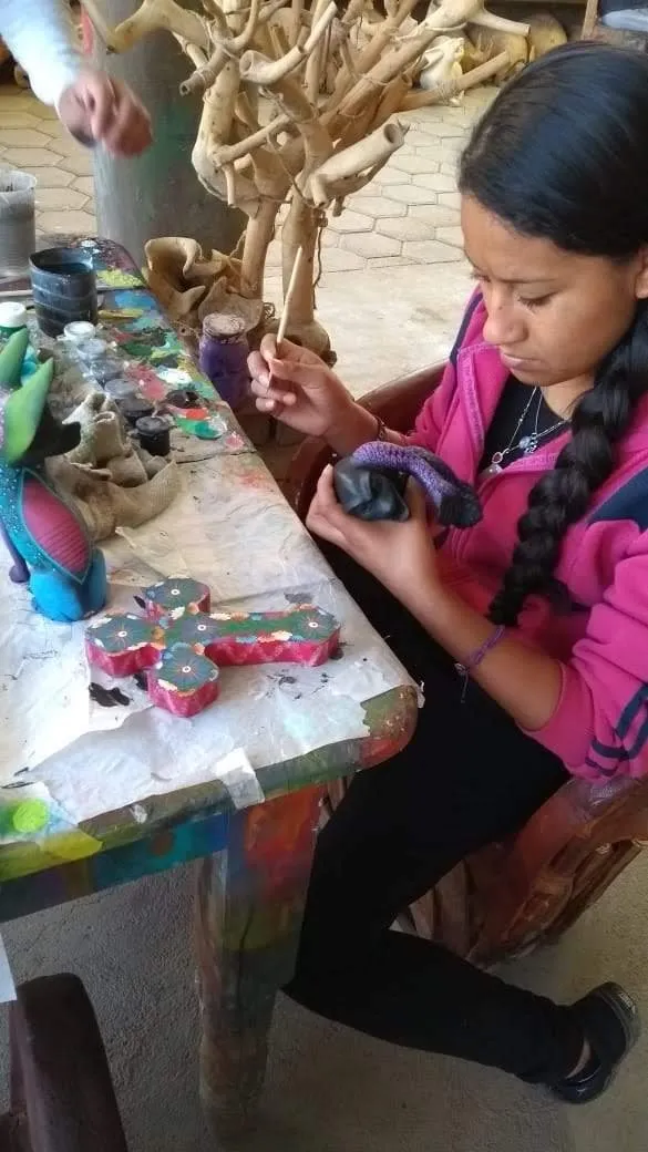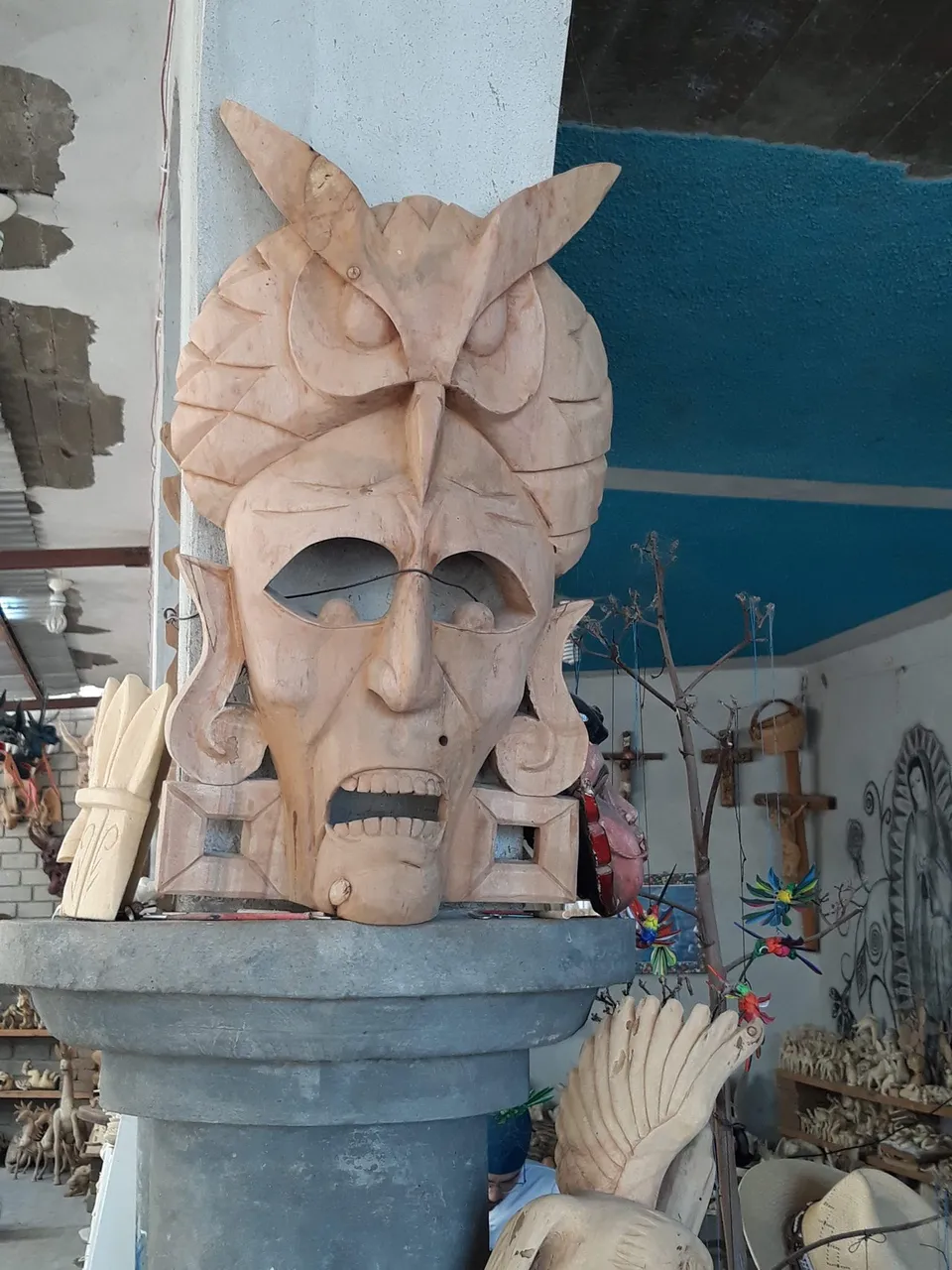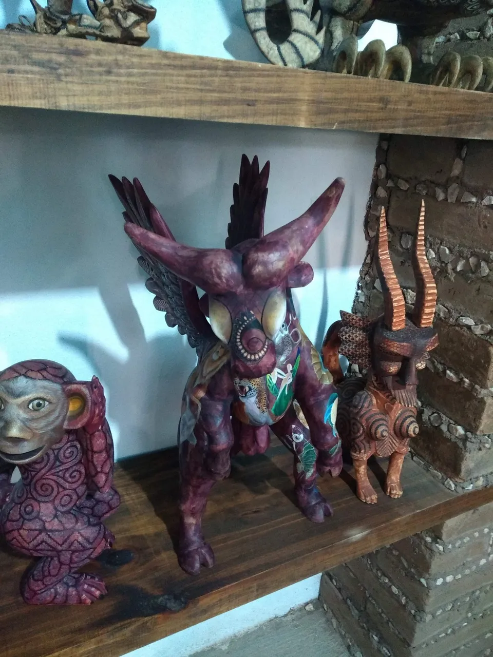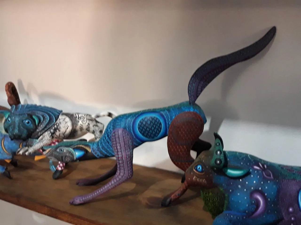 Algo que nos gustó mucho es que el taller está conformado por una familia. Conocimos a varios de ellos y todos fueron muy amables y amigables. Nos dieron un tour donde nos explicaron el proceso de creación de las piezas, desde el tallado, hasta la pintura y detalles finales. A continuación les compartiremos algunas fotos de la obra de este taller.