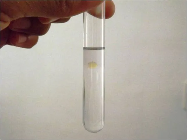 Gota de aceite suspendida en el líquido, efecto de la diferencia de densidad. Fuente: @emiliomoron.