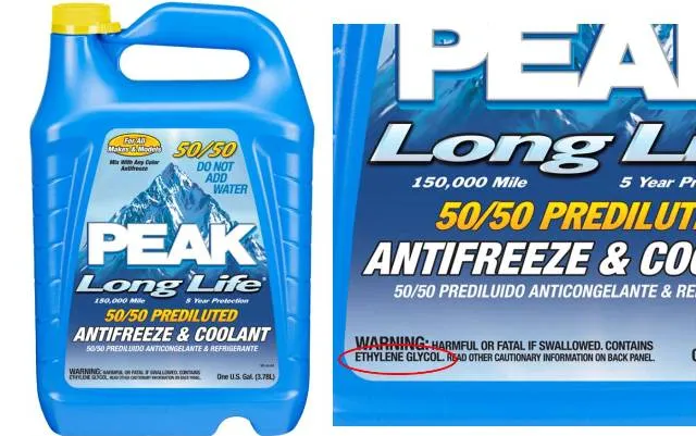 Anticongelante y refrigerante para vehículos. Fuente: wikimedia.commons y editada por el autor.