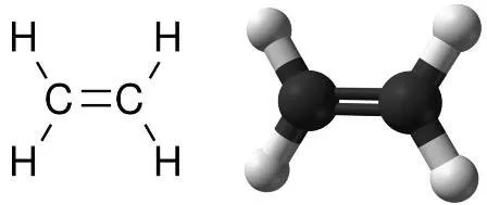 Estructura del etileno. Fuente: wikipedia.com, imagen de dominio público.