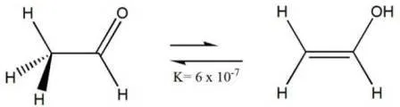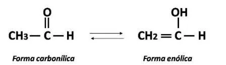Tautomería ceto-enol del acetaldehído. Fuente: wikipedia.com
