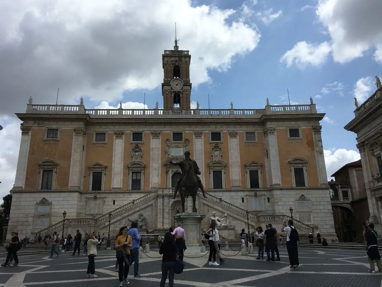 고대 로마의 발상지는 7개의 언덕으로 알려져 있는데 캠피돌리오 광장은 그 중 하나입니다. 광장으로 올라가기 위해서는 상당한 수(108계단 정도?ㅎㅎ)의 계단을 걸어 올라가야 하니 마음을 단단히 먹고 올라가세요. 계단을 걸어 올라가기가 조금 힘들 수도 있지만 확실히 높은 곳에 올라 내려다보니 로마 시내가 한 눈에 들어와 경치가 상당히 좋았습니다. 멀리서 다가오는 먹구름도 잘 보였구요(또 비 오겠네 ㅋㅋㅋㅋ).