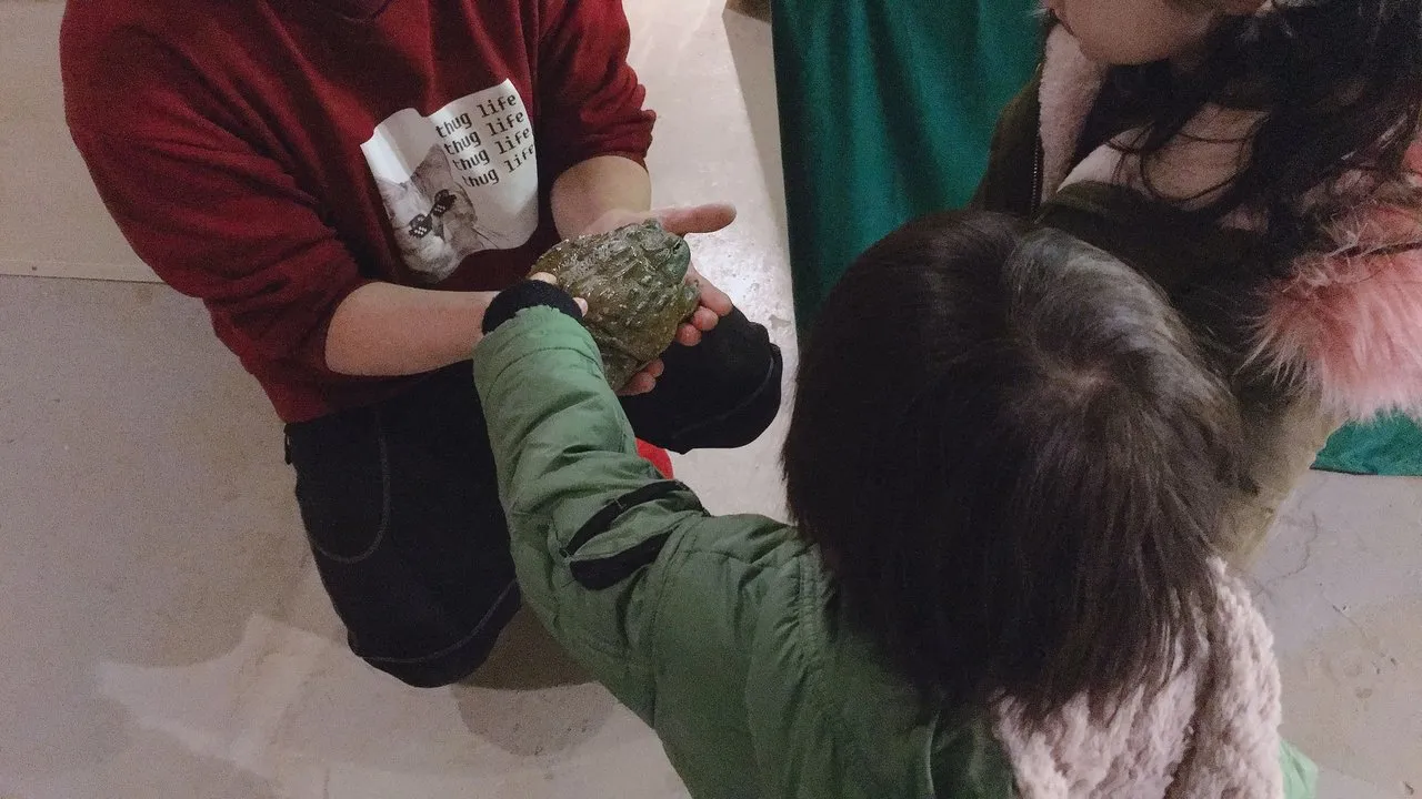 그 외에도 귀여운 친구들이 많이 있어요. 한때 토종 생물의 씨를 말린다며 생태계 교란종으로 현상금까지 걸렸으나 가물치, 메기 등의 역습으로 모습을 감추신 황소개구리님, 알록달록한 배를 만지고 눈에 비비면 실명한다는 얘기가 있는 무당개구리, 그리고 특이하게 곤충도 있었는데요. 힘이 센 장수풍뎅이와 사슴벌레, 그리고 애벌레들도 있었어요~^^