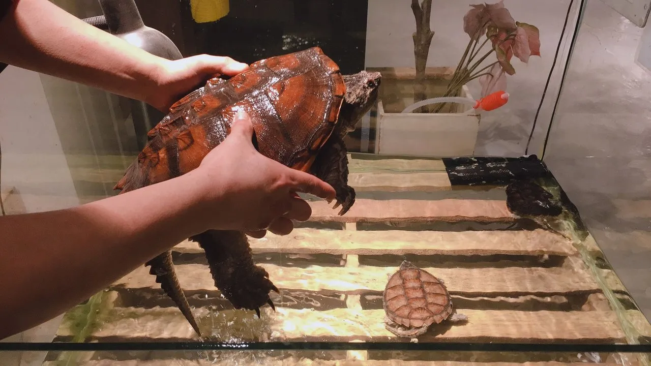 다음은 악어거북보다는 순해 보이는 늑대거북입니다. 이 친구들도 악어거북과 비슷하게 잠복하여 물고기를 잡아먹지만 생각보다 헤엄을 잘치기 때문에 놓친 물고기를 따라가면서 사냥합니다. 파이팅이 넘치는 아이에요. 악어거북에 비해 낚시능력이 떨어지기 때문에 상대적으로 재빠른 몸돌림을 보유한게 아닌가 개인적으로 생각해봅니다. 늑대거북은 물속에 사는 물고기뿐만 아니라 새나 포유류 등 가리지않고 잡아 먹는 무시무시한 아이니까 역시 거북 얼굴 가까이에 다가가지 않도록 주의하시기 바랍니다.