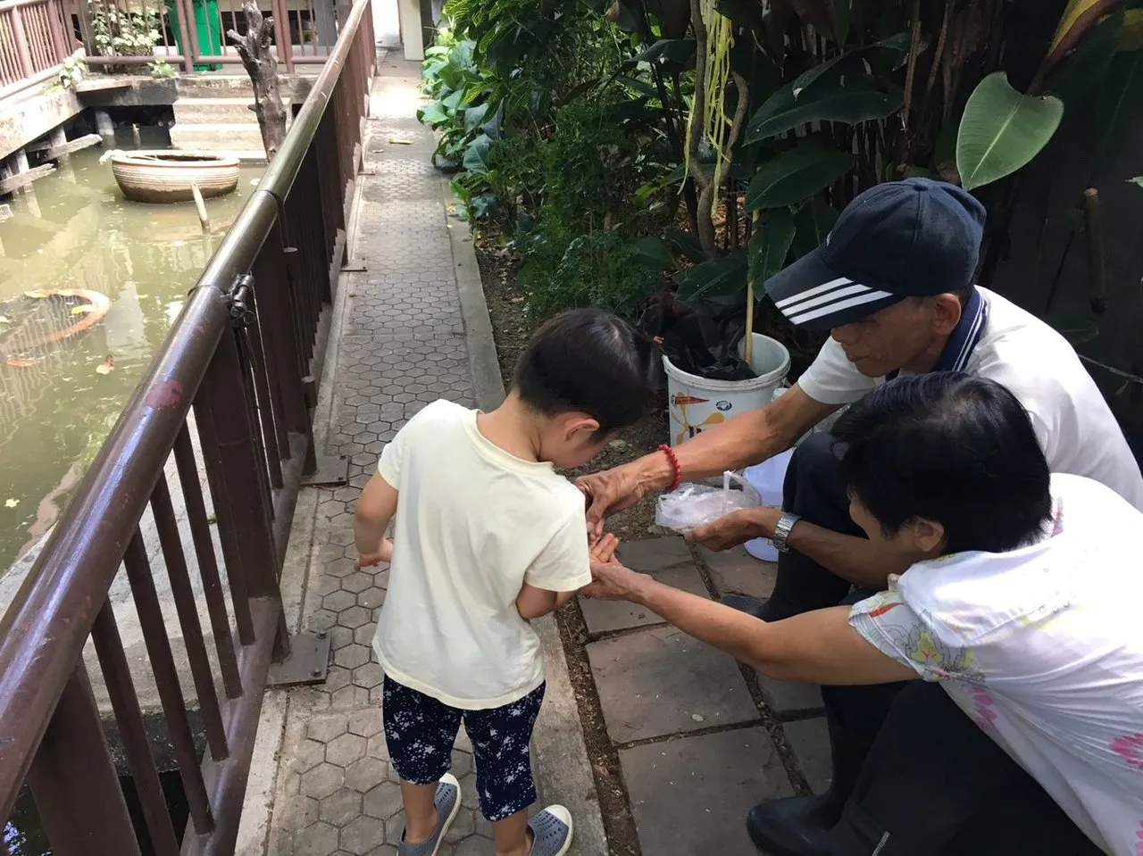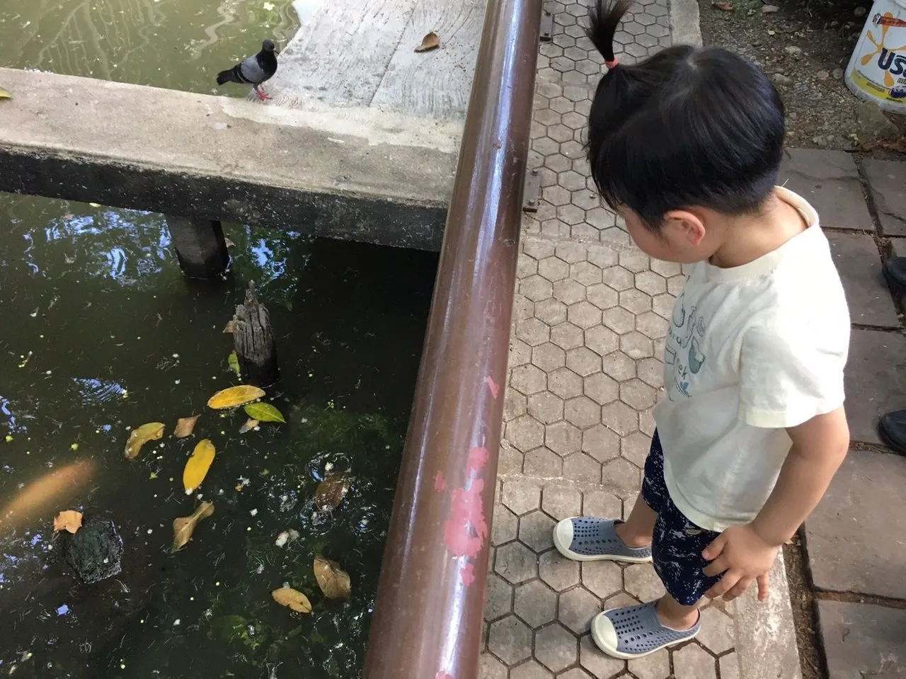 한쪽에는 아주 길쭉하게 연못이 있어요. 그늘이 져있어 시원한 곳이었는데 물고기와 거북이들이 있어 첫째가 주로 머물렀던 곳입니다. 친절하신 아저씨와 아주머니께서 첫째에게 곡물과 빵 조각을 나누어 주셨어요. 물위에 던져 놓으면 메기를 비롯해 몇몇 물고기들과 거북이가 먹이를 차지하려고 난리를 칩니다. 그 모습에 꽂힌 첫째 덕분에 한동안 자리를 뜨지 못하고 한참을 머물렀네요^^ 어제 동물원 가서 실컷 구경하다 왔자나~ 이제 그만 가자;;;
