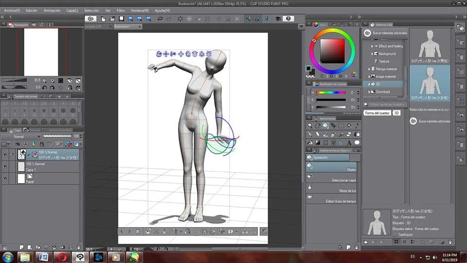 Tiene hasta su propia figura 3D para editar y utilizarla como referencia para poses o directamente calcarla XD (te la pone allí en el lienzo), es una maravilla este programa, lo digo en serio, para ser licencia única tiene las mismas opciones de ‘fotochop’ y quizás hasta más, de hecho, siento que para ilustración este programa es la meca de la excelencia. Like si entendiste la referencia.
